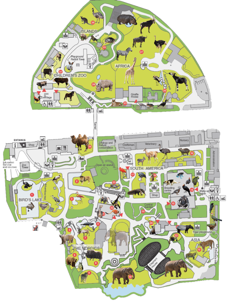 Местоположение: Зоологическата градина в Копенхаген обхваща 11 хектара и се намира в квартал Frederiksberg. До нея лесно може да се стигне с автобус А4 или А7, а най-близката спирка на метрото е Fasanvej.