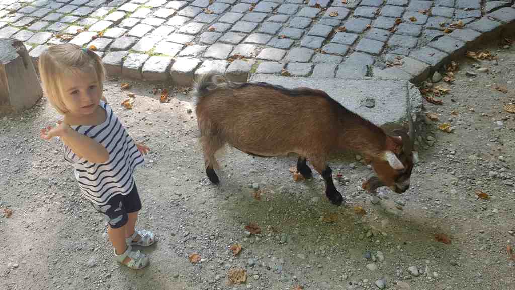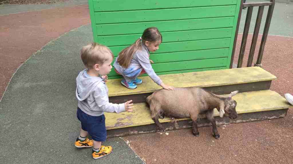 Има добре обособен кът с домашни животни, които децата могат да галят.