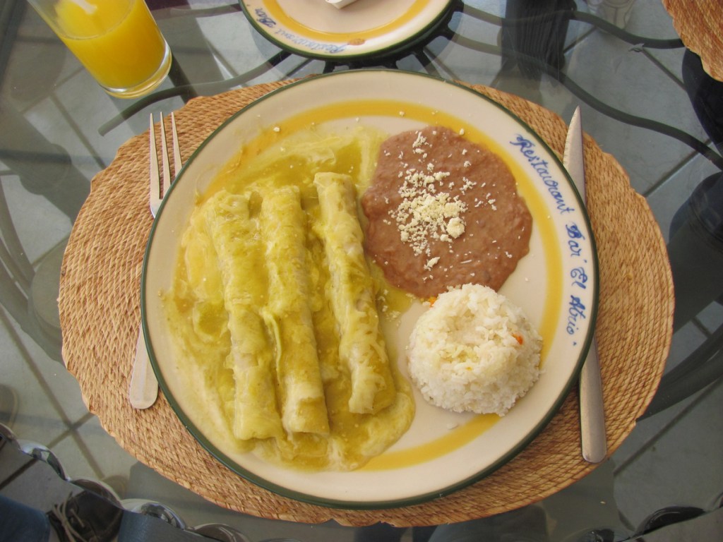 Продължихме разходката си по калдъръмените улички на Таско и красивите му колониални къщи, като малко преди 14:00 часа седнахме на терасата на един ресторант, където хапнахме зеленчукова супа, енчилада (представляваща царевична палачинка с пиле, облята с кашкавал) и с гарнитура пюре от боб и ориз, а за десерт – шоколадов сладкиш. От ресторанта до бусчето направихме приятна разходка спазвайки немската поговорка, че след всяко хапване трябваше да се направят 1000 крачки. В 15:45 се качихме обратно в автобуса, който ни върна по слънчевата магистрала обратно към Мексико сити и хотела.
