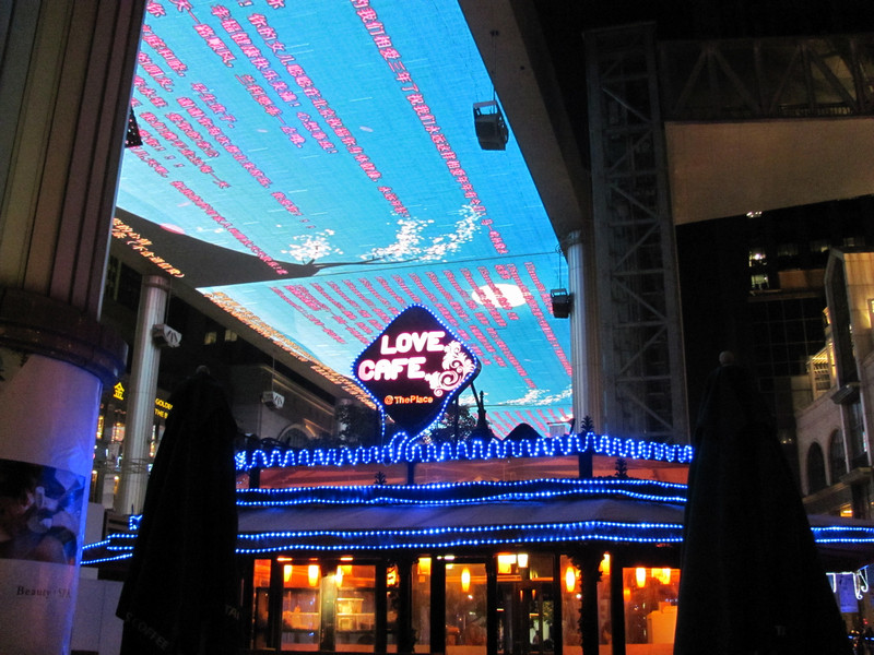 След цирка следваше и нощна разходка на Пекин, който целият бе осветен с различни светлини, но отново най-много ме впечатли големият им открит екран, който бяха опънали върху цяла улица. Смяташе се, че това е вторият по големина екран в Азия и по него прожектираха кратки филмчета за космоса, след това имаше множество надписи. Екскурзоводът ни обясни, че често сред тези надписи имало обяснения в любов и предложения за женитба. Покрай екрана, на улицата имаше много заведения, едно от които се казваше Love Café и веднага си представих влюбените, които идваха тук на по чаша питие или сладолед и загледани в екрана над тях, можеха да изразят любовта си – изписана на небесния екран със звездни букви.