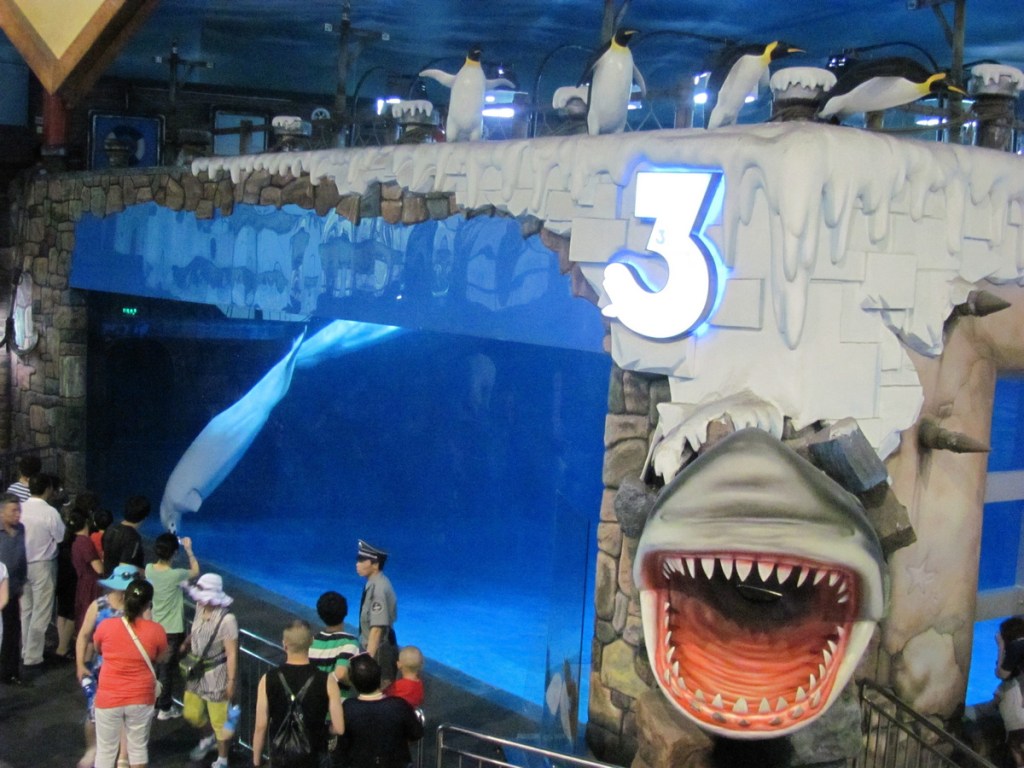 В аквариума снимах множество странни рибки, каквито виждах за първи път в живота си. Имаше огромни раци, многоцветни медузи и други непознати за мен животни. Сградата на аквариума е разделена на 7 зали съответно: Rainforest Adventures / Приключения в джунгладата; Tidal Encounters / Приливни същества; Wonders of coral reefs / Чудесата на кораловите рифове; Shark Wharf / Кеят на акулите; Rare Chinese sturgeon hall / Редка китайска есетра; Marine Mammal Pavilion / Павилион на морските бозайници и Whales and globefish gulf /Китове и морски риби. Всяка една от залите е забележителна.