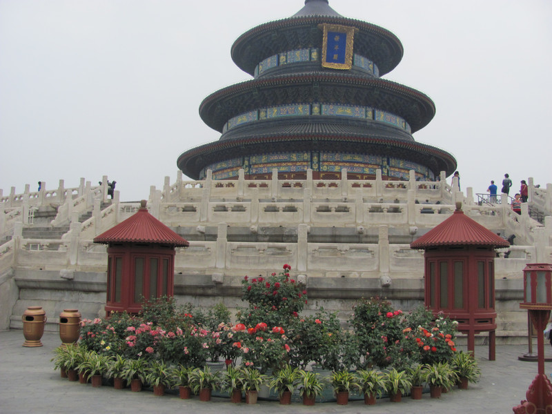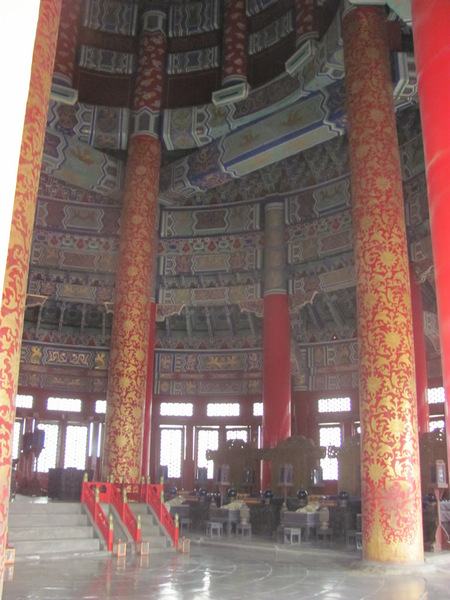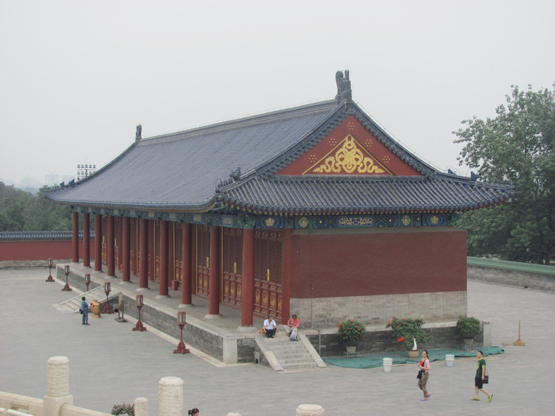 Храмът на небето бързо ни очарова, като още на входа видяхме много хора, които правеха гимнастика, под звуците на музика и цвърчене на птички, сред зеленината на многовековни кипариси. Самият храм на небето е най-големият архитектурен комплекс в света (обхващащ площ от 2700 м2), почитащ небето. Представлява комплекс от храмове, посещаван още от императорите на династията Мин и Цин, които отдавали своята почит към небето и се молили за добра реколта. Храмът е ограден от стена, която на юг придобива квадратна форма, а на север – полукръгла. Това въплъщава древното китайско вярване, че небето е кръгло, а земята – квадратна. До 1916 г. територията на Небесния храм е забранена за достъп. В него имал право да влиза само императорът. От дълбока древност молитвите към боговете на земята и на небето били един от главните религиозни ритуали в императорския двор. Те можели да бъдат извършени само от императора, тъй като неговата особа се считала за свещена. В Древен Китай се вярвало, че Китайският император е син на небето, който съдействал за решаването на земните проблеми от името на небесните покровители.