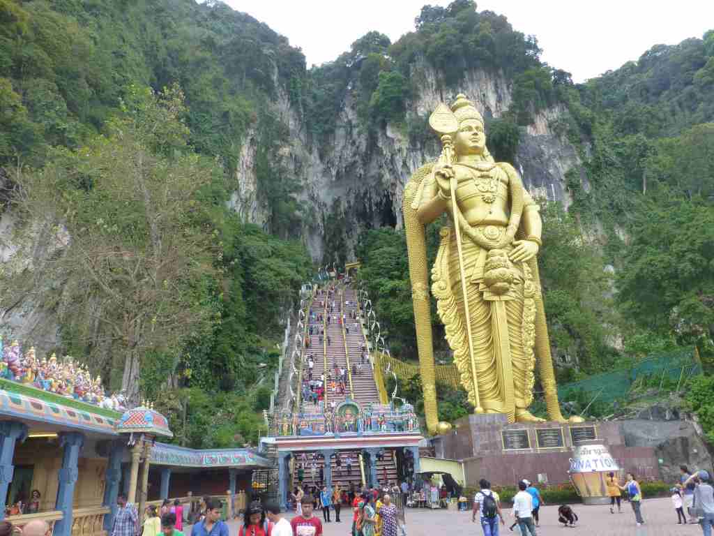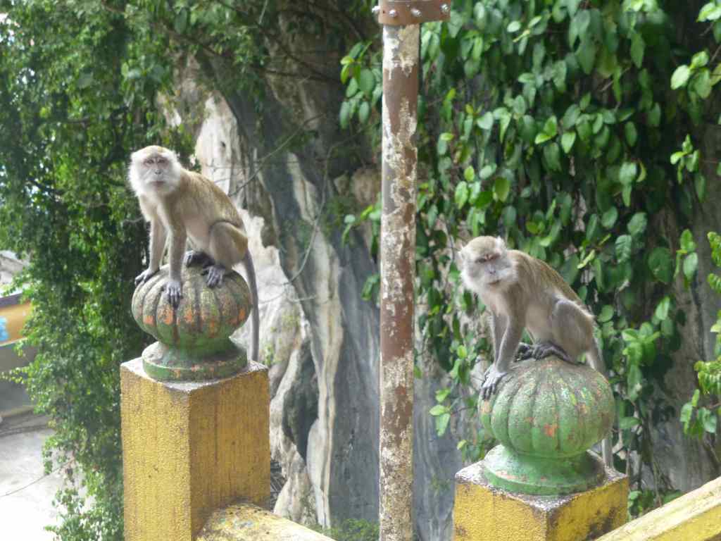 Отново се качихме на Hop On Hop Off бусчетата и продължихме обиколката на града, минавайки покрай красивата Национална джамия. Същата се намираше в красив парк и можеше да побере 15 000 човека. Последваха още няколко джамии, все пак Малайзия е предимно ислямска държава. Ние обаче искаме да разгледаме нейните будистки храмове, затова щом се върнахме обратно при кулите Петронас, взехме такси и се отправихме към пещерите Batu, които се намират на 13 км северно от Куала Лампур. Входът на пещерите е пазен от огромна златна статуя на Murugan, който е индуисткия бог на войната. По-добри пазачи обаче се оказаха 272-те стъпала, които водеха до пещерите и които лесно можеха да откажат по-мързеливите посетители. При входа на пещерите имахме и весели посрещачи в лицето на множество маймуни, които проверяваха какво им носят туристите и сладко хрупаха фъстъци и банани.