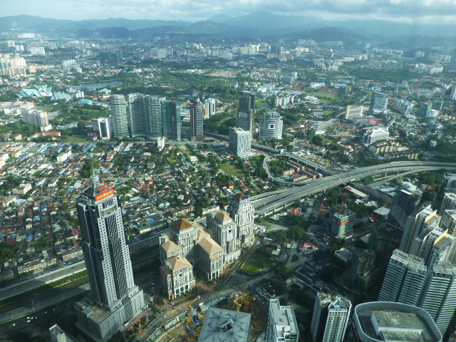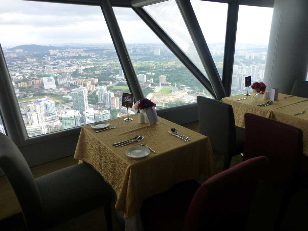 Встрани от входа на Петронас спираха двуетажните автобуси Hop On Hop Off, с които решихме да продължим обиколката на града. Първата спирка бе Туристическия център, а след нея телевизионната кула Menara. Това е седмата най-висока телевизионна кула в света, издигаща се на 421 метра. Пред нея се нареждат японската Tokyo Skytree (634 м), китайската Canton Tower (600 м), канадската CN Tower (553 м), руската Ostankino Tower (540 м), китайската Oriental Pearl Tower (468 м) в Шанхай и иранската Milad Tower (435 м). На панорамната площадка, на която разбира се, се качихме имаше табло на което KL Tower (Menara) се съревноваваше с останалите високи кули в света. Преди да се качим на панорамната площадка се отбихме в ресторанта, от където гледката също беше прекрасна, а и нямаше толкова туристи, и снимането беше по-лесно.