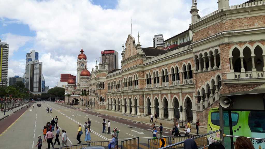 Макар, че бяхме уцелили дъждовния период, който е от октомври до април, през деня се радвахме на слънчево и топло време. Именно слънчевите лъчи ни приканиха към нови обиколки на града, като направихме още едно кръгче с туристическите автобуси. Този път се направихме повече снимки на площада Мердека, която е колониалната част на Куала Лумпур.