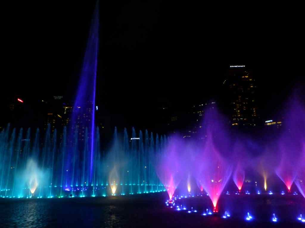 Изчакахме да се стъмни и се отправихме към кулите Петронас, пред които имаше красиво осветени фонтани, които танцуваха под звуците на мелодични песни. Такива представления се провеждаха на всеки кръгъл час от 12:00 до 14:00 часа и от 18:00 до 23:00 часа през работните дни и от 10:00 до 00:00 часа през уикенда. Бляскав завършек на един бляскав град, който бурно се развива и като магнит привлича все повече туристи. В Куала Лумпур, може да няма коали, но има уникална спокойна атмосфера, сгушена сред множеството небостъргачи.