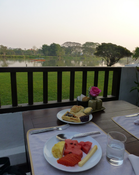 Хотелът The Legend Chiang Rai**** бе прекрасен. Повечето стаи бяха разположени в самостоятелни бунгала, като всяка стая имаше своя открита всекидневна зона. Из целия хотелски комплекс криволичеше малка рекичка, по която бяха накацали множество мостове. Нашата всекидневна имаше удобен диван люлка и маса под формата на дъска за табла, като беше много приятно да се люлеем отвън и да се наслаждаваме на ромона на рекичката. Леглата в стаята бяха не по-малко приказни като същите бяха с балдахини, и макар същите да означаваха, че мястото бе пълно с комари, на мен атмосферата ми се стори вълшебна. Такава бе и храната в ресторанта, като по богато отрупаните бюфет маси имаше всякакви храни. За пиене си взех сок от кокосов орех, който ми сервираха направо от ореха с една сламка. Денят ни бе претрупан с прекрасни впечатления и преживявания, без да знаем, че утрешния ден щеше дори да го надмине…