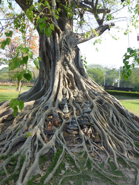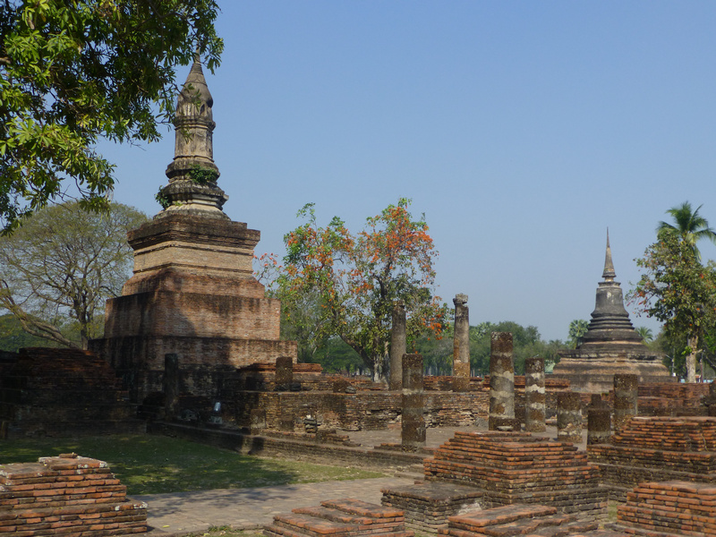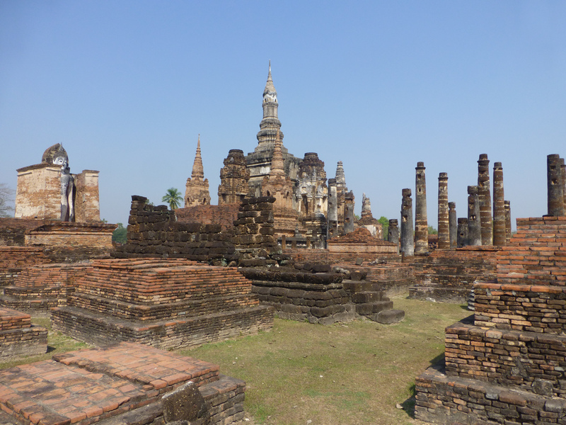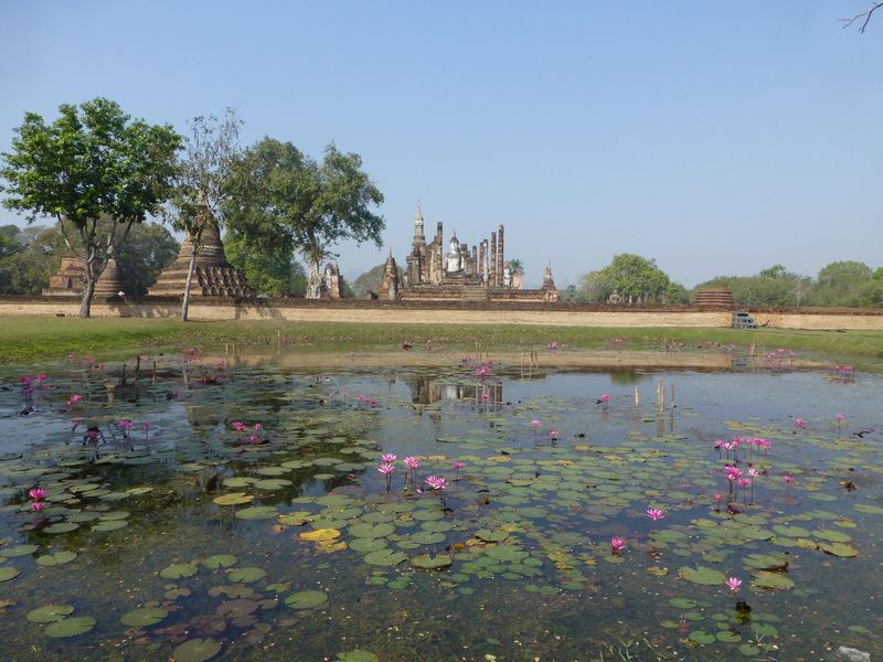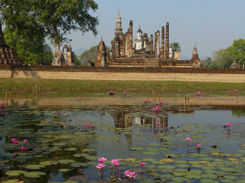 Историческият парк Сухотай покриваше обща площ от 70 кв.км, на които се издигаха 193 руини от бляскавата през 13-ти век столица. Тук можеха да се видят царския дворец, двайсет шест храма и стотици пагоди, всички те имаха силно кхмерско (камбоджанско) влияние. Дори с колелета бе трудно да се обиколят и разгледат всичките руини. В 10:00 часа, когато стигнахме Храма на големите лилии, екскурзоводът ни даде 30 мин. свободно време. Отправихме се от другата страна на езерото, където се намираше един от най-големите храмове (или поне каквото бе останало от него) Wat Mahathat или в превод Храма на големите реликви. Посредата на храма сред множеството колони се издигаше огромна статуя на Буда. Храмът датираше от края на 13-ти век, преклонението и възхищението обаче си оставаха и до днес.