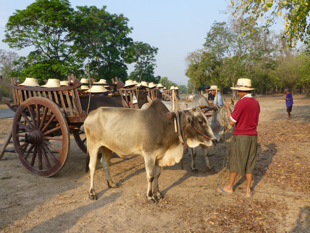 Наближихме Сухотай, като преди да стигнем до стария столичен град, екскурзоводът ни беше подготвил приятна изненада. Насред пътя автобусът ни спря и каза, че трябва да продължим с друго превозно средство, което се оказаха дървени каручки теглени от тайландски бикове. Раздадоха ни и по една сламена шапка, която да ползваме по време на пътуването, като седнахме по 4-6 човека в каручка.