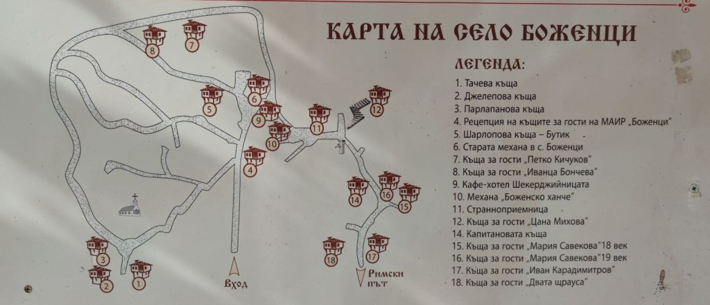 По пътя за Боженци си разказахме за болярката Божана основала това село преди 6 века. Най-общо легендата звучи, че по време на турското нашествие, голяма част от хората бягали от столичния град Велико Търново и се заселили в труднодостъпните части на Балкана. Сред тях била и младата болярка вдовица Божана, която дошла тук и в нейна част кръстили селото Боженци. В последствие синовете й се захванали с търговия и селото бързо се разраснало. Особено красива е къщата-музей на Баба Райна, разкриваща местния бит и начин на живот по време на Възраждането. Всъщност цялото село е обявено за архитектурно-исторически резерват през 1964 г. и е част от културните паметници на Юнеско.