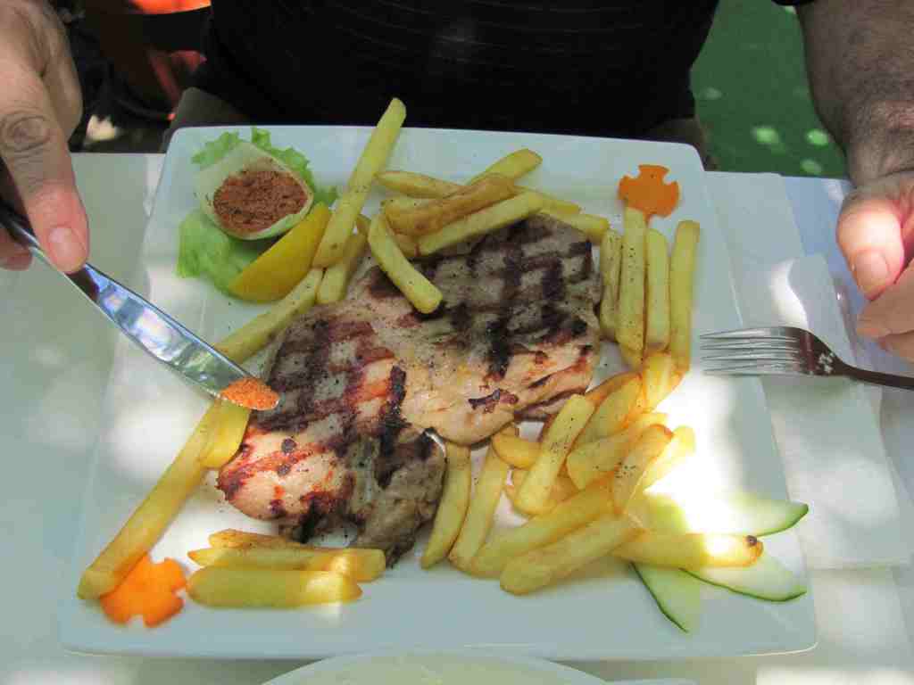 В непосредствена близост до музея, точно срещу църквата и нейната камбанария, имаше ресторант-гостилница Бъчвата. Заведението бе хубаво, с двор и дебела сянка под асмата, от където се спускаха сочни зелени гроздове, и ние седнахме именно там. Кухнята беше отлична – сервираха ми болярско кюфте по-голямо от чинията. Обслужването също беше на ниво и град Елхово затвърди добрите ми впечатления.