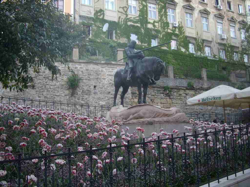 На площада беше издигнат паметник на ban Josip Jelačać (или граф Йосип Йелачич) яхнал своя кон, която била поставена за първи през 1866 г. и след това през 1947 г. свалена от там. През 1990 г. била отново поставена, като този път сочила на юг, а не на север към унгарците, както стояла през 19-ти век. Сред всичките сергии и хора бе трудно да се снимат красивите сгради на площада, като всички те бяха в различни стилове, и най-старата датираше от 1827 г. Самият площад обаче датираше още от времето на създаването на града, като според една легенда Загреб получил името си именно на този площад, когато един военночалник повикал едно момиче, което стояло до близкия кладенец и му извикал: „Мандушо, загреби ми вода“ и от тогава кладенецът се наричал Мандушевац, а градът Загреб. Днес фонтанът Мандушевац бе разположен в източната част на площада, на няколко стъпки от истинския извор, като туристите и жителите на Загреб хвърлят монети в него за късмет. Тази вечер фонтанът бе заобиколен от хора, които гледаха народните танци на бляскавата сцена. Този площад бе едно от най-оживените места в хърватската столица, както през деня, така и през нощта, като днешният ден бе типичен пример за това.
