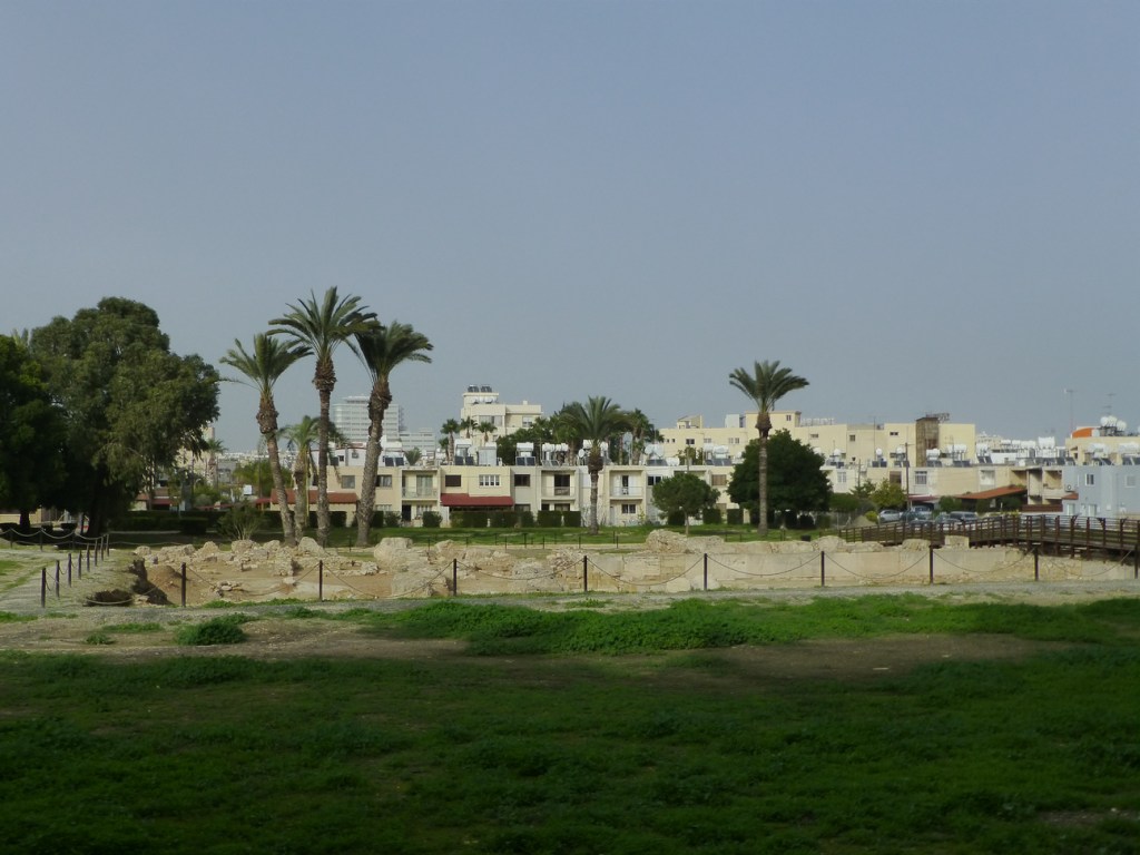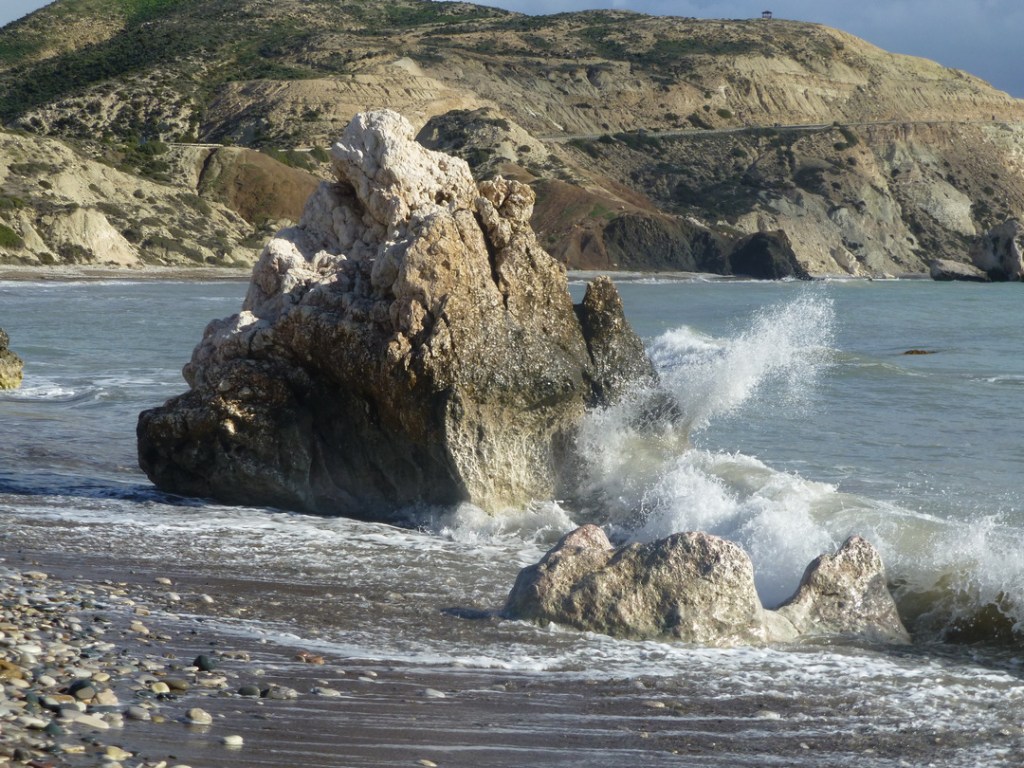 Курион ни очарова, но нямахме търпение да стигнем и до Пафос, както и до известната скала на Афродита – Petra tou Romiou, разположена преди града. Вярва се, че именно тук била родена красивата богиня на любовта Афродита. Нейното име произлиза от гръцката дума aphros, която означава пяна, и вероятно именно от пяната образувана от разбиващите се вълни създала красивата богиня. Днес мястото бе превърнато в известна туристическа атракция, като се вярва, че всеки който може да преплува три пъти около скалите ще се радва на щастлива и споделена любов. Хладката вода и тъмни облаци не ни предразположиха към плуване, но затова пък се опитахме да снимаме скалите от различни места, наслаждавайки се на красивия морски пейзаж.
