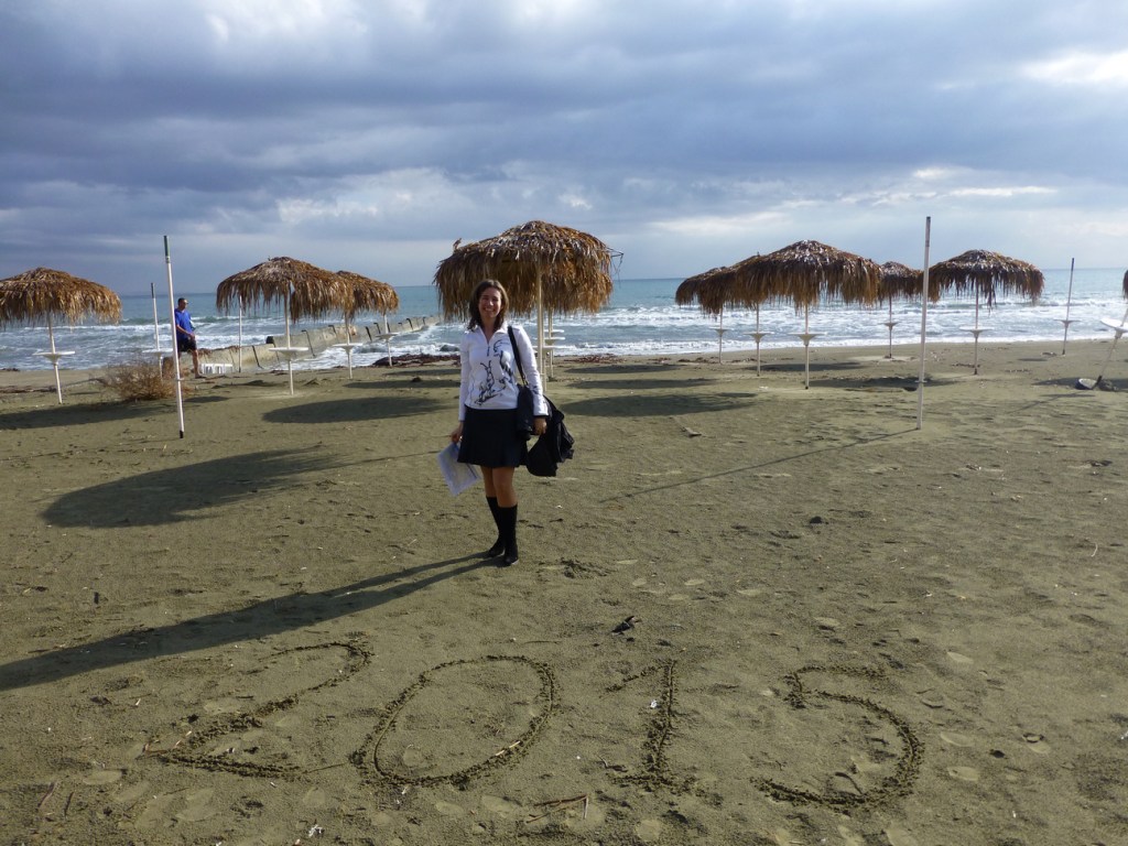 След закуска излязохме на плажа, но не за де изкъпем, а за да напишем в пясъка 2015 година, която си пожелахме да бъде много успешна. След това с колата под наем се отправихме към центъра на Ларнака. Спряхме първо пред форта, издигнат от турците през 1625 г. на мястото на средновековен замък, който бил разрушен два века преди това. В него можеха да се разгледат оръжия от Османското владичество, а през лятото във вътрешния двор се провеждат концерти, постановки и други културни мероприятия. През първият ден от годината обаче военното укрепление бе затворено и ние се задоволихме със снимки отвън. Джамията зад него също ни впечатли, но най-много ми хареса крайбрежната алея, с множество палми и приятно соления аромат на море. Преди пристанището кривнахме в една странична уличка и стигнахме до пощата и някакъв музей. Същият бе затворен и ние се върнахме пеша към центъра, като направихме кратка почивка в едно много приятно кафене Coffeeland, където сред десетките видове кафета и сладкиши бяха декорирани коледно дърво само с червени стереопорени чаши – беше много оригинална идея. От тук се насочихме към църквата Св. Лазар, която бързо ни очарова – разгледахме я само отвън, защото бе затворена, но слънчевите снимки компенсираха пропуска, че не успяхме да влезем в нея. Същата бе издигната, за да съхранява мощите на светец през 10 век, на мястото на стара църква от 900 г. В църквата имало красиви икони, сред които и известната икона от 17-ти век на Възкръсващия Св. Лазар. Върнахме се към колата и с нея се отправихме към северната част на Ларнака, където се намираше древния град Китион.