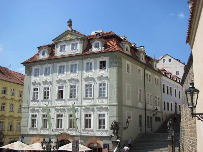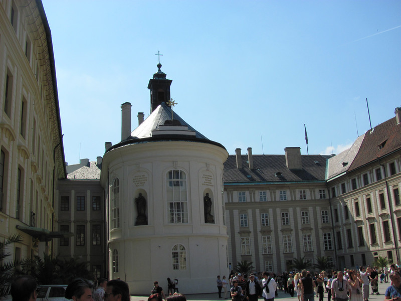 Обиколката ни започна от левия бряг на река Вълтава, където на един хълм е издигнат красивия замък Храдчани. Храдчани се нарича целия комплекс, като храд не означава град, а крепости стени. Този замък е вписан в рекордите на Гинес, като най-големият средновековен замък в света. Датира от 9-ти век и се разпростира на 18 акра, включвайки в пределите си катедралата Св. Вит и базиликата на Св. Георги. Някога тук са живели кралете на Бохемия, а днес е официалната резиденция на президента, като впечатляваща церемония има при смяната на караула на всеки кръгъл час.