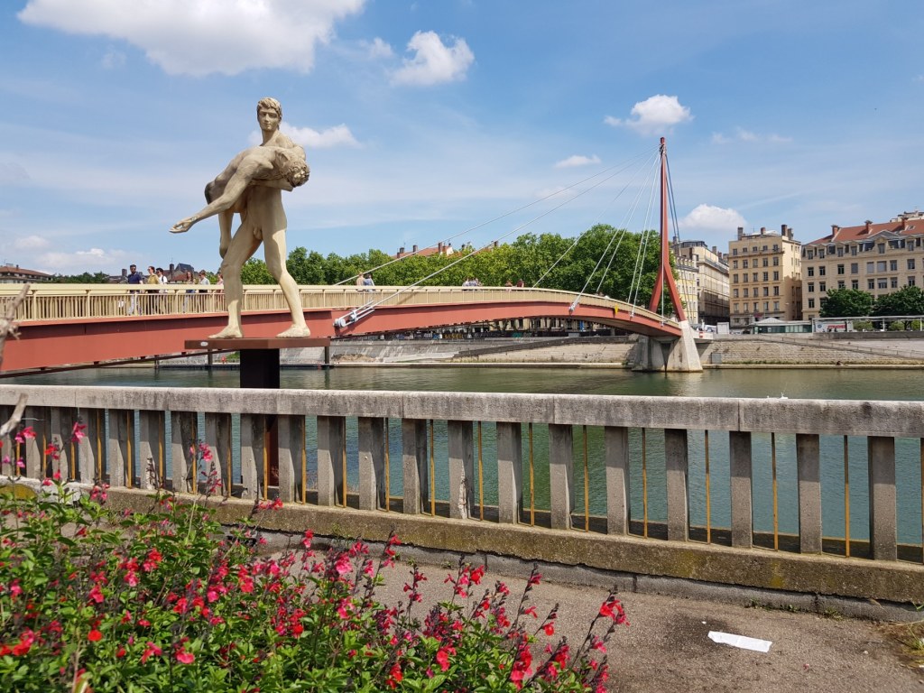 2) Реките Сона и Рона се вливат в Лион. Рона извира в Швейцария, като минава през Женева, след това пресича Франция и се влива в Средиземно море. Тази река често е олицетворявана като митичен мъж – толкова бърз и своенравен, че може да увлече всеки човек, животно или предмет. Тихата река Сона (извираща от Източна Франция) пък е оприличавана на жена и има множество френски скулптури, мостове и сгради изобразяващи любовта на Рон и Сона, особено в Лион.