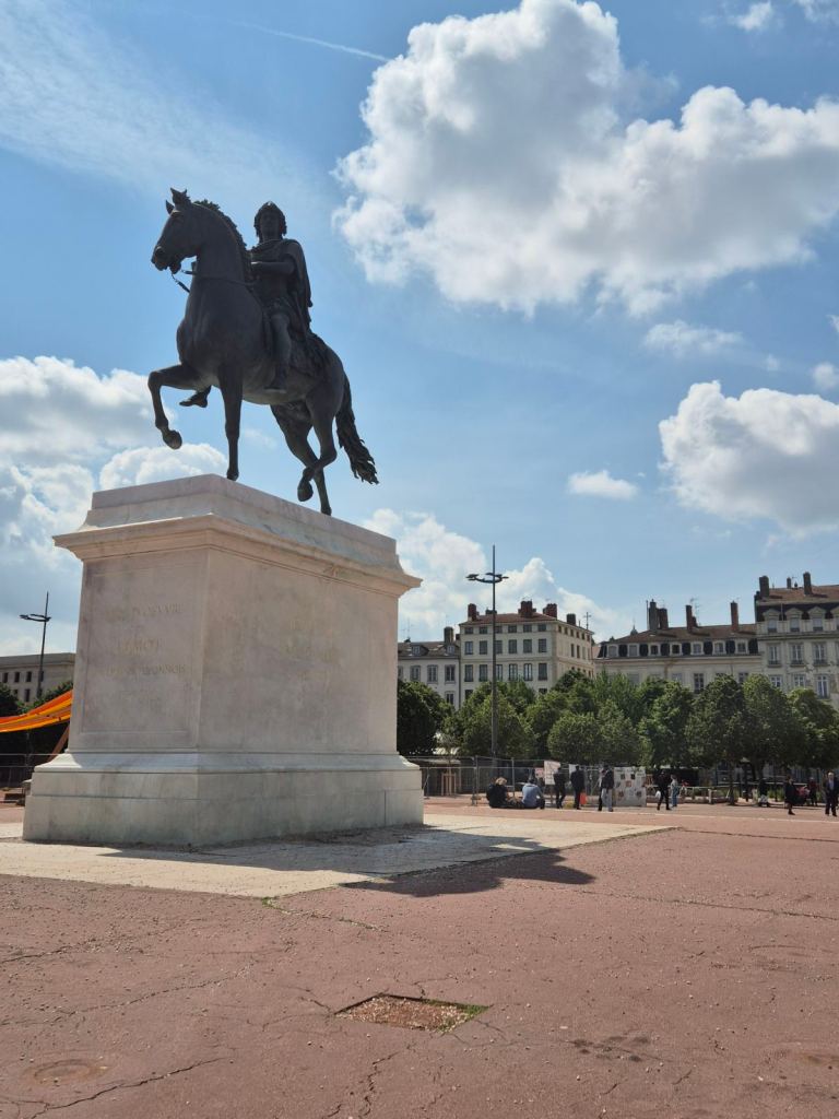 3) Place Bellecour – най-големият пешеходен площад във Франция и четвъртият по големина градски площад в Европа. Моята разходка из Лион започна именно от тук. На площада гордо се издига конна статуя на Луи XIV – „Кралят Слънце“, като интересното е, че статуята е изработена без стремена, което било рядкост за онова време.