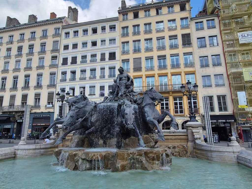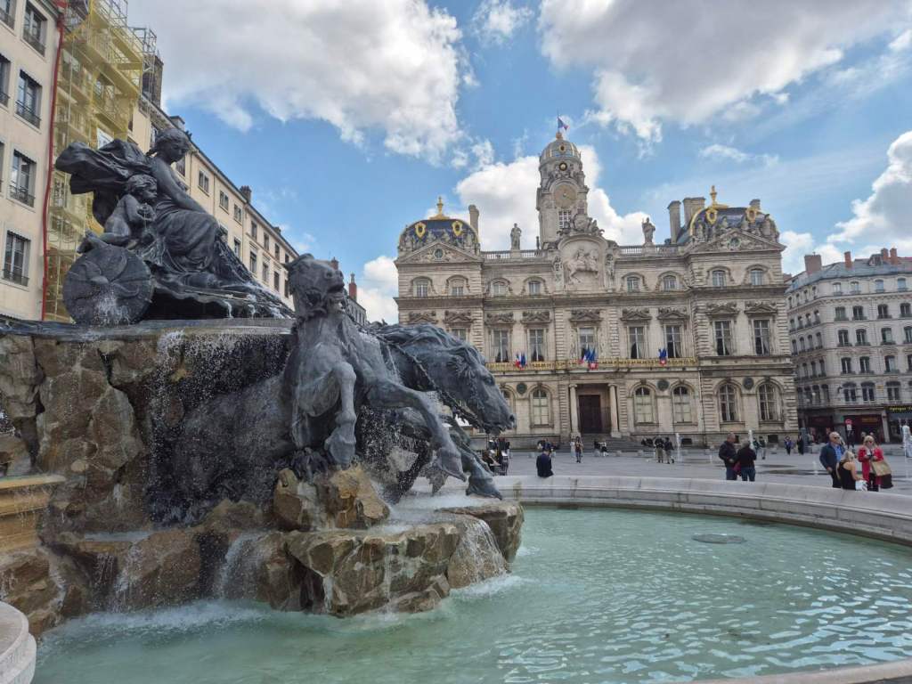 5) Place des Terreaux – Площадът на изкуството и историята. Тук се издига величествата сграда на Кметството (Hôtel de Ville), издигната през XVII век с впечатляваща барокова фасада. Пред нея множество фонтани допринасят за красотата на площада, но истинската перла или черешката на тортата, безспорно е фонтанът от Фредерик Огюст Бартолди. Това е същият скулптор, който е създал Статуята на свободата. Фонтанът представя алегория на Франция (като женска фигура) и четири коня, които символизират големите френски реки.