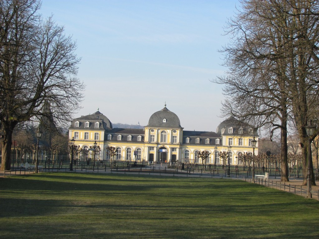 За съжаление Poppelsdorfer Schloss и ботаническата градини в двора му бяха все още затворени. Работното време бе от 10:00 до 18:00 часа, и към 09:15 нямаше никого. Красивият замък издигнат в стил Рококо през 1715-1753 г, гордо позираше на фона на синьото небе, ботаническата градина обаче бе все още гола, със стърчащи клонки без цветове, дължащи се не на работното време, а на сезона. Тук се помещава университетската колекция на минерали и ботаническата градина. Самият дворец не е отворен за посещения, но бях прочела, че си заслужава човек да се разходи из 8000 различни вида растения и множество костенурки, които обитават малки изкуствени езерца. Входът е безплатен по време на празниците, а през останалото време е 2 евро.