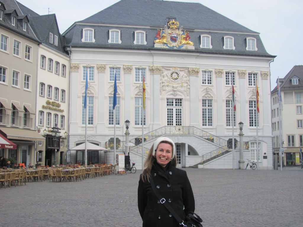 Също толкова красив се оказа и площадът пред кметството. Пъстри поддържани къщи се перчиха една до друга. В центъра на площада имаше покрит паметник или фонтан, явно го реновират или го бяха скрили от студа. На този площад обаче човек не усещаше студеното време, красотата топлеше и аз се радвах, че бях дошла тук. Пешеходната зона на Бон се оказа пълна със забележителности и сгради, които да се снимат.