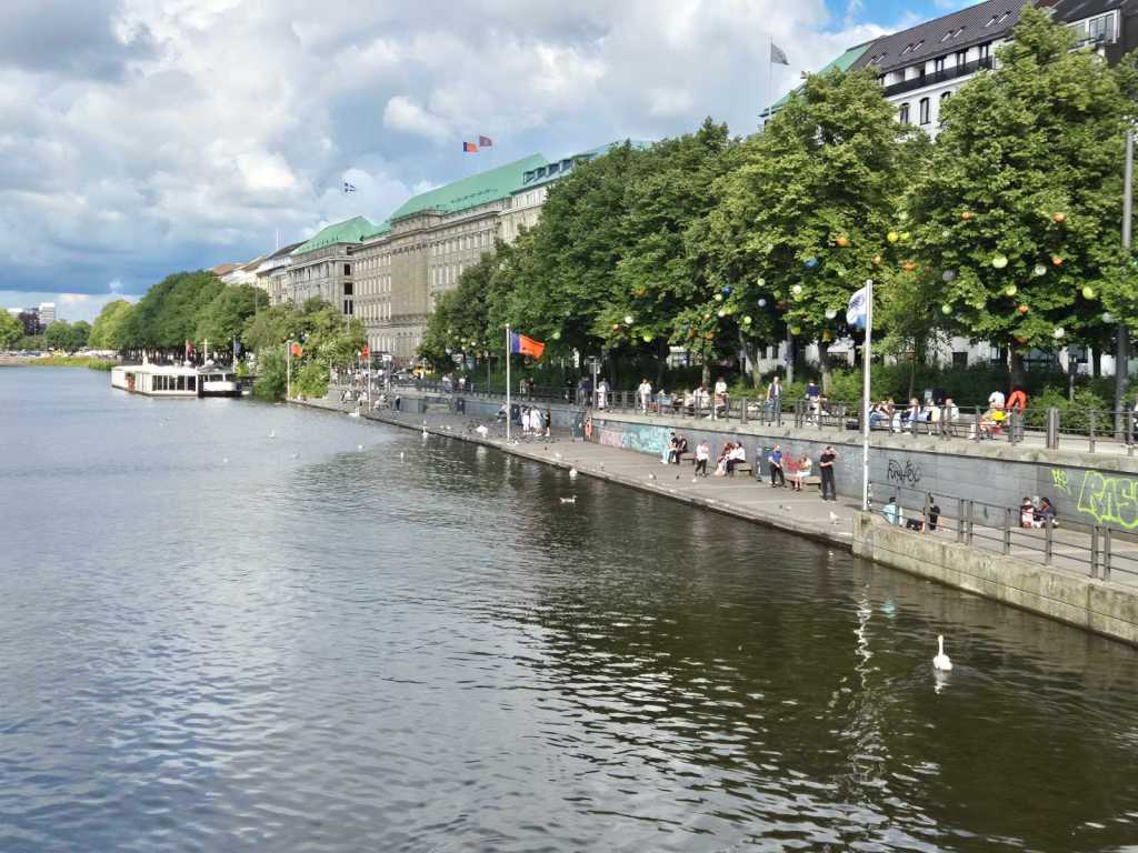 От там може да се спуснете към вътрешното езеро Алстер / Binnenalster – известно със стотиците си лебеди, които живеят тук, а красиви сгради и кафенета по брега му създават почти парижка атмосфера.