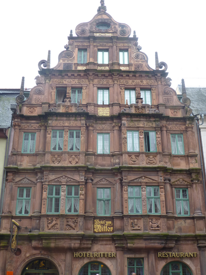 Точно срещу катедралата бе разположена прекрасната сграда на рицарите, превърната днес в луксозен хотел, но запазвайки напълно външната богата декорация. Построена през 1592 г. тази ренесансова сграда безспорно бе една от най-красивите в Хайделберг.