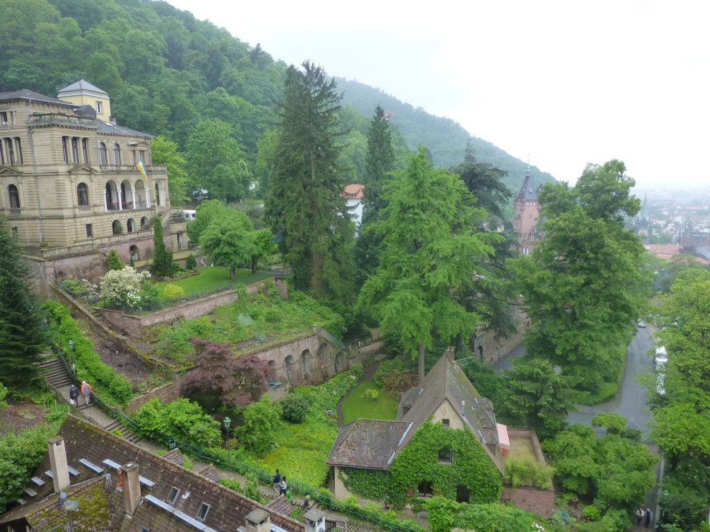 От другата страна на моста, оградена с каменни стени, започваше Философската пътека. Като излизах от хотела на вън валеше и вместо със синьото небе, трябваше да се задоволя със синия си чадър опънат над мене. В началото си философската пътека бе тясна, стръмна и обградена с високи каменни стени. Нямаше никаква панорама поне през първите 20 метра. След това се заискачвах по множеството стъпала, минавайки край красиво оформените тераси с великолепна гледка над Стария мост, Замъка и старата част на Хайделберг. Изкачването ми продължи, докато стигнах до една алея и именно нея нарекли през 19-ти век Алеята на Философите или Philosophischesweg, тъй като това било любимото място на множеството творци, които са идвали тук.