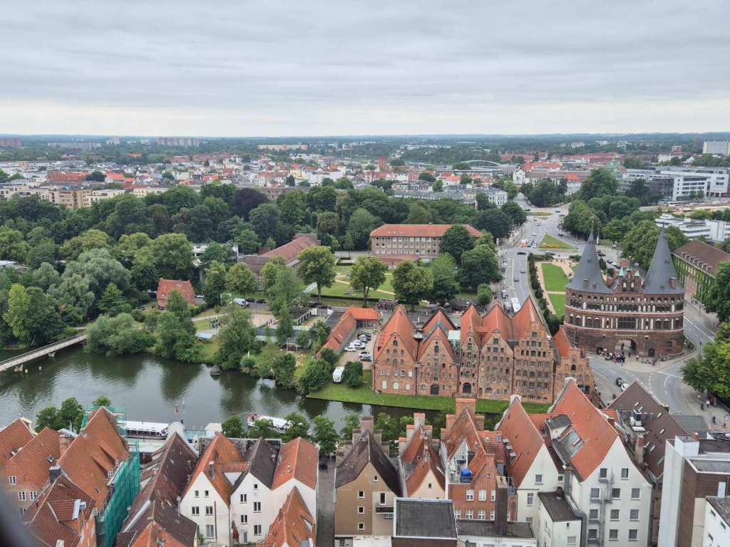 След 250 стъпала нагоре ще се озовете на наблюдателната площадка, от която се разкрива зашеметяваща гледка – червените покриви на Любек, готическите кули, лъкатушещата река Траве и пристанището в далечината. Казват, че ако видиш целия град от върха на „Свети Петър“, сърцето ти остава там – поне с една своя част, и мога да го потвърдя!