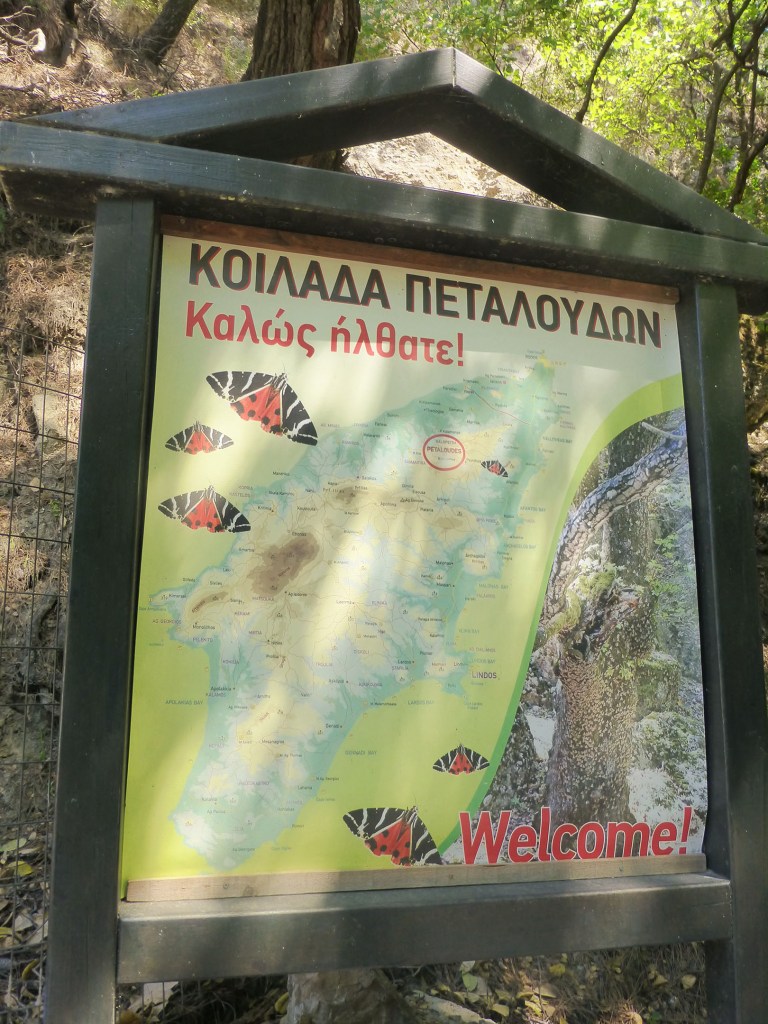 Разходката ни продължи с посещение на още едно специално за острова място – Долината на пеперудите. Представляваше природен резерват с единствената естествена гора от дървета Liquidambar orientalis в Европа, в която от средата на юни до края на август (туристическия сезон) идват и гнездят множество пеперуди, сред които и величествените огромни пеперуди Монарх. Именно ароматът на дърветата привличал толкова пеперудите, които идвали тук, от всички страни на острова.