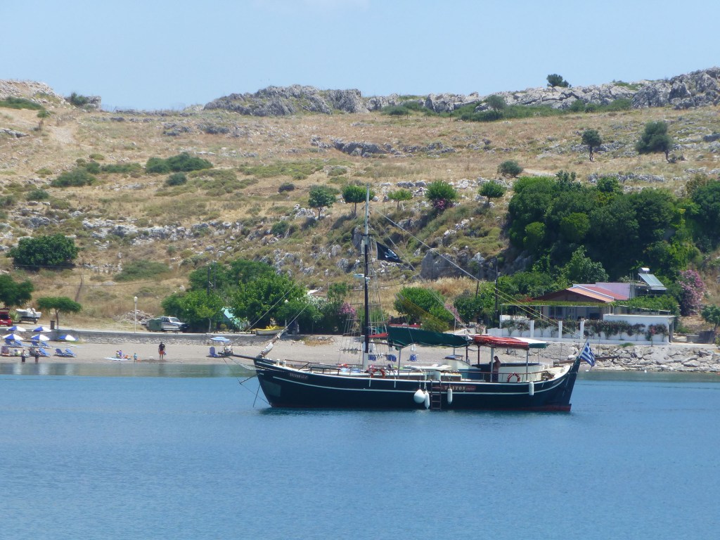 Подминахме и малкия залив Антъни Куин, който носеше името на известния артист, който в ранните 60-те години снимал тук филма „The Guns of Navarone”. На Антъни Куин много му харесало тук и закупил парче земя обещавайки да изгради на нея Филмова академия в Родос. Това звучало чудесно, но така и не се осъществило. Той така и нищо не направил за гърците, но те запазили името му в този залив, който бе прекрасно място за плуване. Макар Антъни Куин да играе ролята на Зорба Гръкът (филм сниман в Крит), в него нямало нищо гръцко, и всъщност имал мексикански произход.