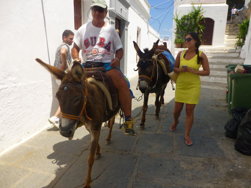 Отправихме се директно към замъка, като изкачването по тесните калдъръмени и стръмни улички отне не повече от 15 минути. Имаше и друг алтернативен начин за изкачване посредством „линдоските таксита“, каквито наричаха магаретата тук. Те си имаха специална стоянка и който желаеше, можеше да се изкачи до крепостта на гърба на магаре. Пеша обаче можехме да спираме колкото си искаме – хем за сувенири, хем за още прекрасни снимки.
