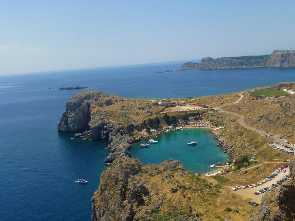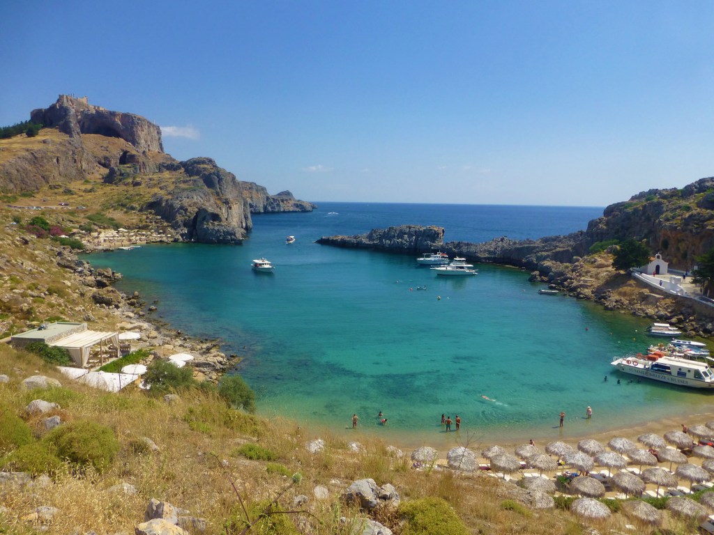 Първата ни спирка преди красивия Линдос бе залива на Сейнт Пол, който от крепостта в Линдос изглеждаше като затворено езеро, тъй като входът на водата оставаше закрит. Тук имаше параклис на Св. Пол, който минал от тук, когато се връщал от Йерусалим и спрял на острова, за да проповядва християнството и така залива получил неговото име. Днес неговият параклис бе често използвано място за сватби, като фонът на морето и красивия град Линдос, придаваха истинско вълшебство на мястото, което отново обсипахме със снимки, след което се отправихме към безспорно един от най-красивите градове на острова – Линдос.