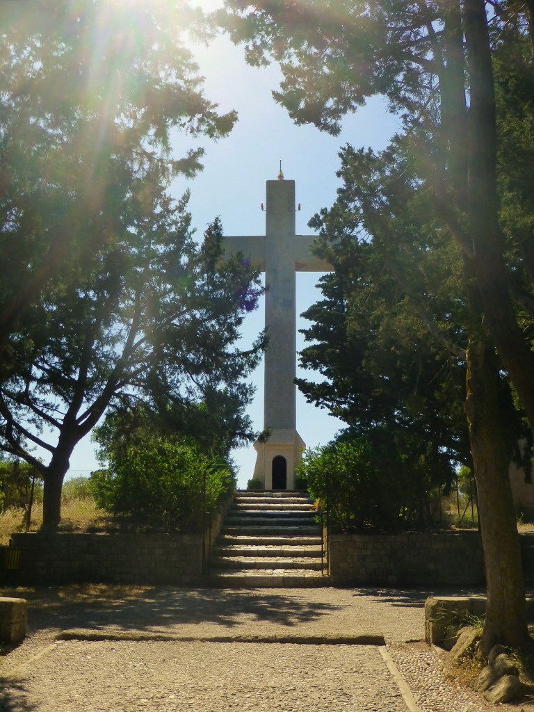Качихме се на хълма Monte Filerimos, като направихме невероятни панорамни снимки към крайбрежието и вторият по големина град на острова – Ялос, където се намираше и нашият хотел. Освен с името Ялос, градчето било познато и като Трианда (Трийсет), защото на времето било много богато и имало 30 пищни големи къщи. Отправихме се пеша към огромния 70-метров кръст, който бе „пазен“ от множество пауни, които обикаляха навсякъде и издаваха силни крясъци. Успяхме да снимаме няколко мъжки екземпляра с разпънати опашки, които се перчеха пред кафявите женски. Пътеката до кръста бе направена от италианците по образец на Голгота – мястото, където бил разпънат Исус, като на всяко място, където носачите са спирали докато носели кръста бяха издигнати каменни паметници с библейски релефни картини.