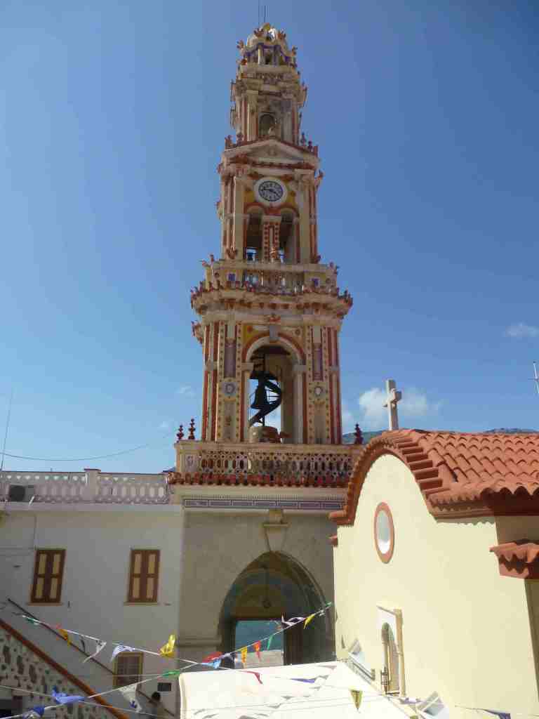 Всички тези истории показваха важността на острова и способността му да съхрани своите богатства. Днес останалите древногръцки храмове бяха превърнати в православни църкви. Така напр. Храма на Афродита в Йоанис, станал църква на Св. Йоанна; Храмът на Аполон в горната част на Сими станал църква на Пророк Илия. Ние обаче предпочетохме крайбрежен вместо църковен туризъм и се отправихме към часовниковата кула, издигната от другата страна на пристанището, точно срещу полицейския участък.