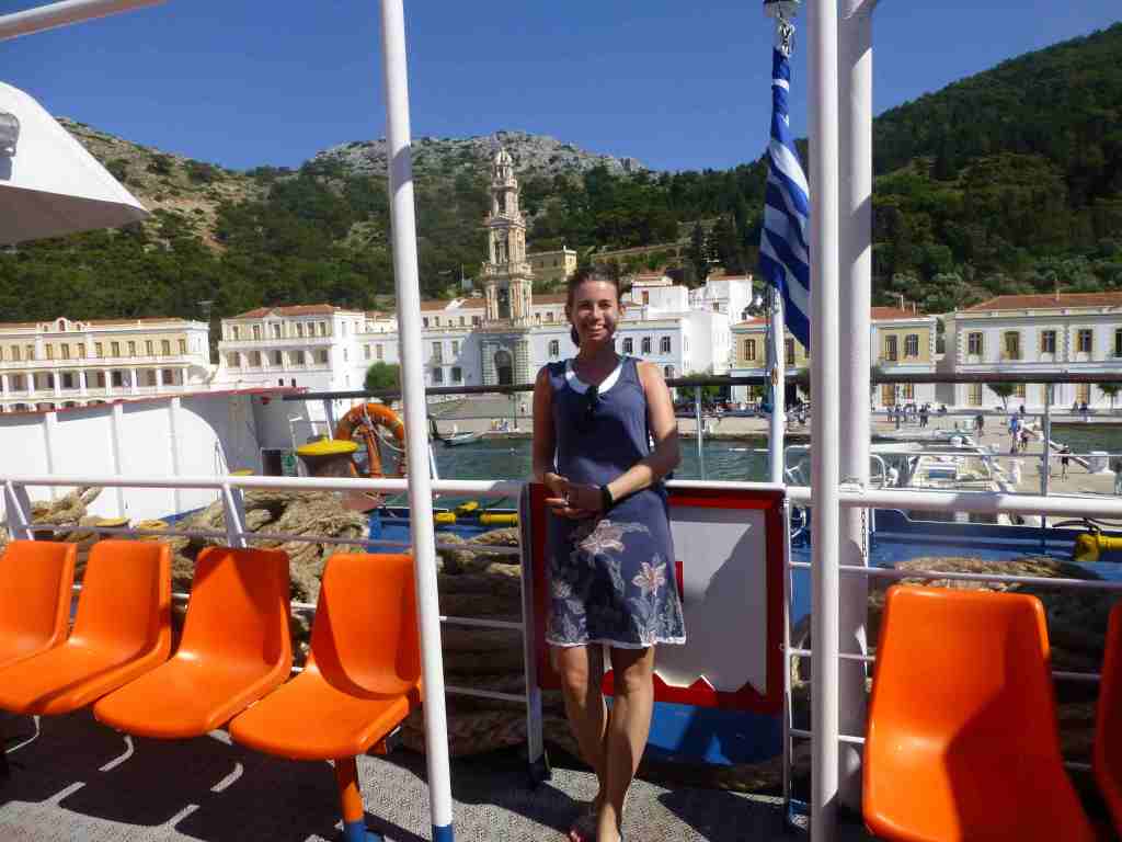 След прекрасния обяд дойде време за нещо също толкова прекрасно наречено сладолед. Гърция бе известна със своя сладолед и не пропусках всеки ден да го опитвам потвърждавайки отличните му вкусови качества. Този път си избрах две топки шоколадов и бисквитен сладолед, които ядох през целия път докато се изкачвахме по широките каменни 500-стъпала, разкриващи красива панорамни гледки към града и пристанището. Не умората ни попречи да стигнем до върха, а малкото време, което ни оставаше преди фериботът ни да отплава. В 14:15 часа корабът ни се отправи в посока Panormitis, който се намираше точно от другата страна на острова, и обиколката продължи около час, запълнен с нови морски и ветровити снимки.
