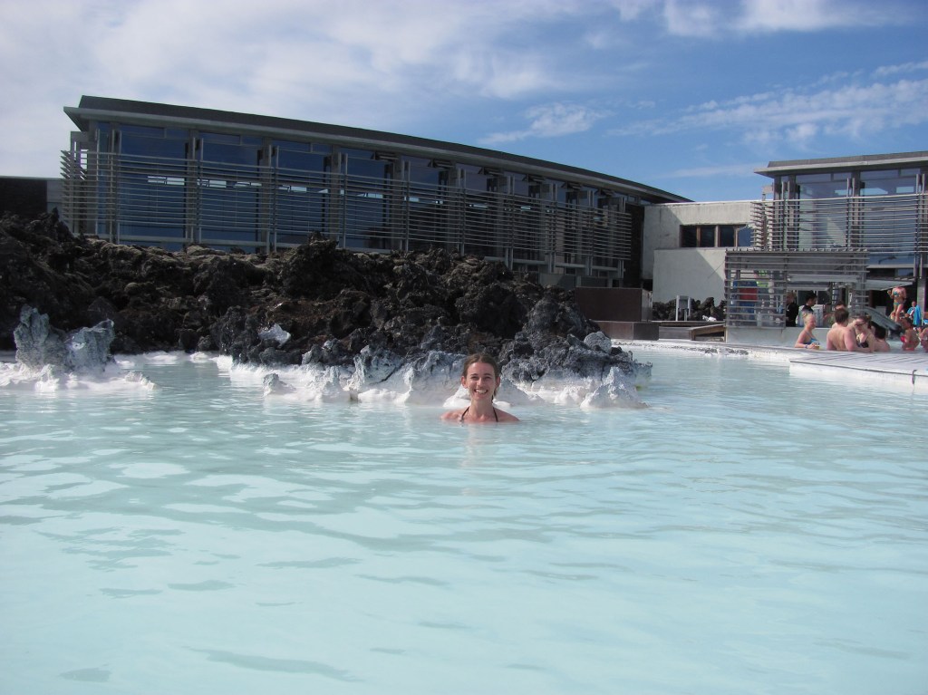 Мястото бе уникално – край засъхнала лава тече млечно-синя, топла и лековита вода. Това вероятно е най-посещаваното място в цялата страна – най-добрия спа-център в Исландия. Бе невероятно при 12 градуса навън, да се съблечеш по бански и да се къпеш на открито. Пáрите се издигаха нависоко към безоблачното небе, слънцето ни се усмихваше щедро и плувайки или просто киснейки се в топлата вода, успяхме да отпуснем всичките си сетива. Беше невероятно усещане да се къпя в лечебна минерална вода, стъпвайки по засъхнала лава.