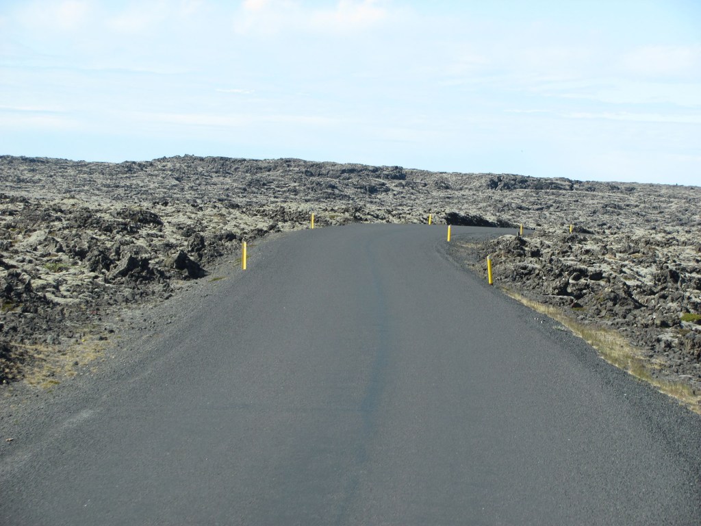 Продължихме пътуването, като пейзажът бе все така каменист от засъхнала лава. Всъщност местните гледаха на лавата от полезната й страна, тя пречиствала подземните им води, които се ползвали директно за битови нужди, без да се налага да минават през пречиствателни станции. Исландия поддържа висок стандарт и всички цени са много високи, но таксите за отопление и вода са символични. По пътя ми направиха впечатление и множеството жълти колчета забити по периферията на шосето, които през зимата били жизненоважни, за да могат хората сред снега и вечната тъмнина да виждат огражденията на пътя.