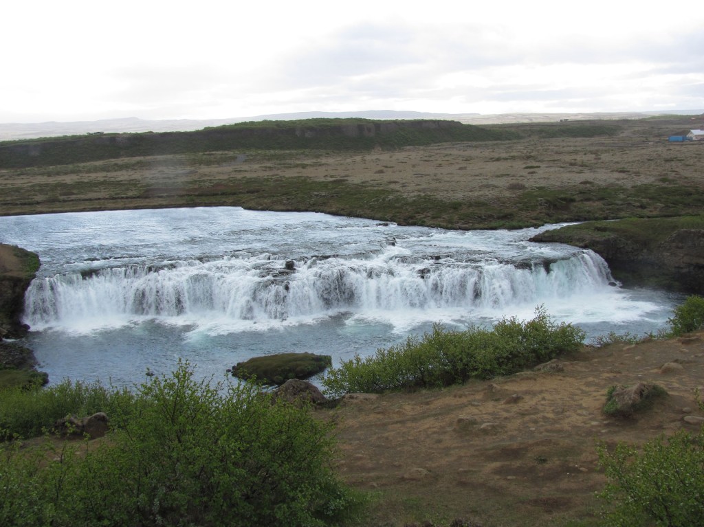 В началото на пътуването ни започна да вали, но екскурзоводката побърза да ни успокои. Местните казват, че ако не ти харесва времето, когато вали, изчакай час и половина и то ще се промени – или за добро или за лошо. При нас промяната бе на добре и не след дълго дори пекна слънце. Първата ни спирка бе в едно малко градче с оранжерии, в които се отглеждаха различни плодове и зеленчуци. За съжаление Исландия е сравнително бедна на растения. Дърветата заемат едва 1% от общата територия. Според легендите, когато първите норвежки викинги се заселили тук, отсекли дърветата, за да си направят кораби и къщи. Нови дървета обаче така и не поникнали повече. Причините за това са много: вулканичната пръст, подземните газове и ледения въздух. Дори сега в съвременния модерен свят, засаждането и грижата за едно дръвче отнемат много време и грижи. В оранжериите, които видяхме отглеждаха краставици, чушки, домати и дори се надяваха някои от овошките им да роди ябълки.