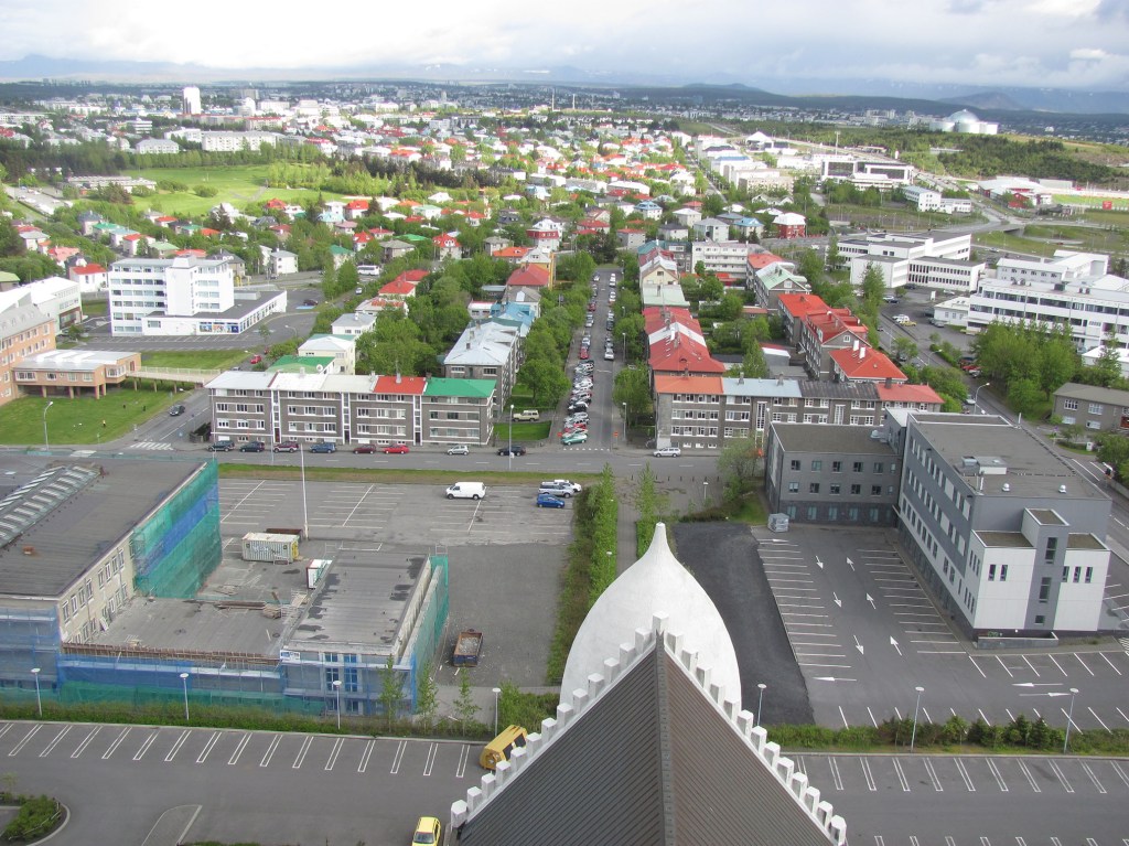 На връщане от мола тръгнахме пеша и минахме покрай известната им църква Hallgrímskirkja. Името се чете трудно, но от панорамната й площадка се вижда ясно надалеч. Качихме се догоре с асансьора и останахме доста време захласнати в морето и града. Пред църквата е издигнат паметник на Leif Ericsson, викинг и пътешественик по душа, който през 10 век се отправил към Северна Америка.
