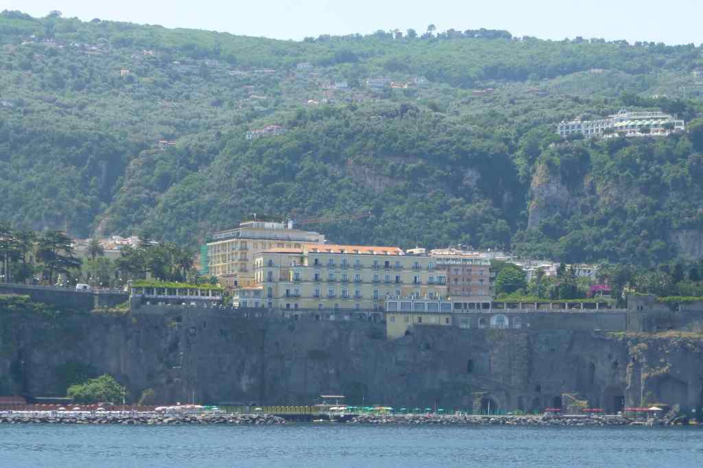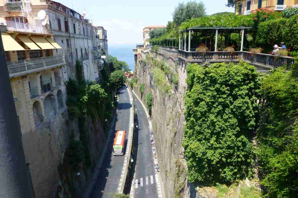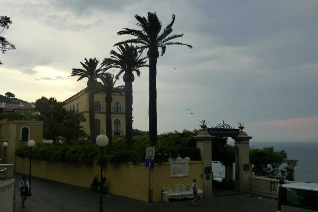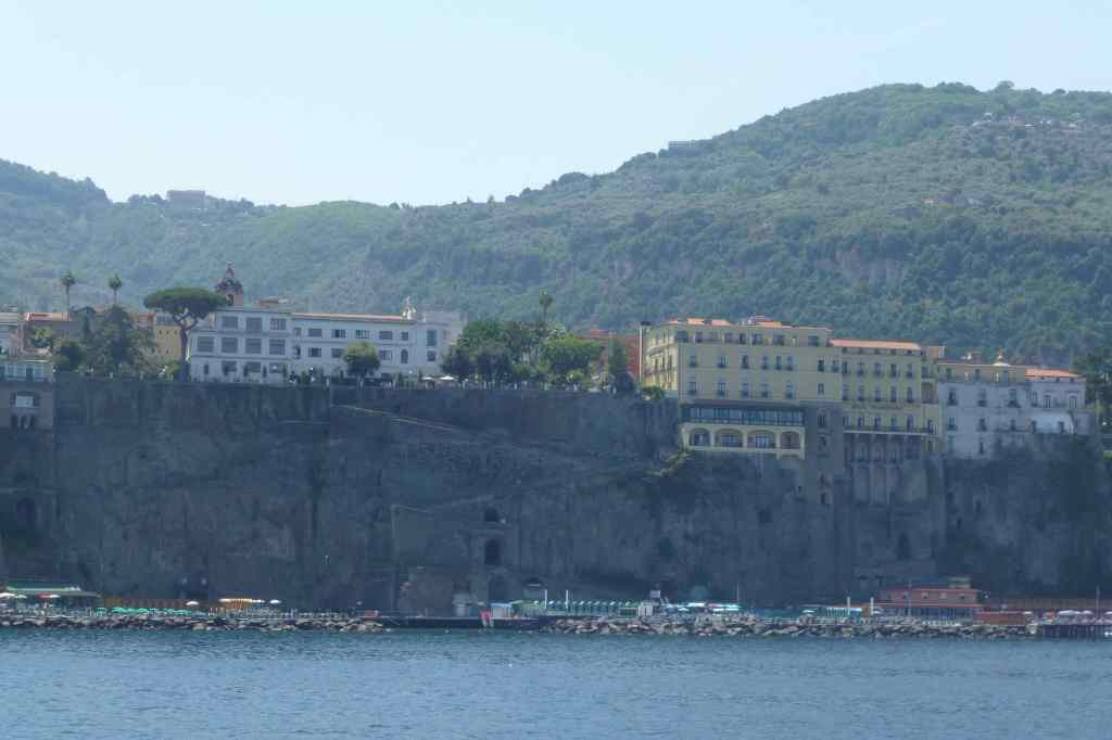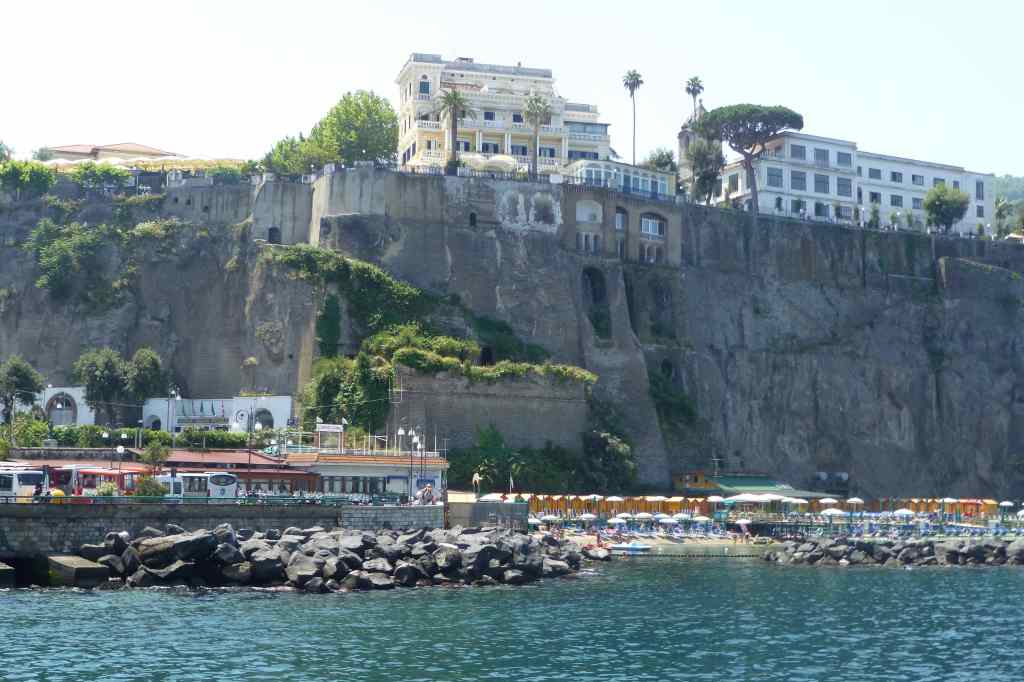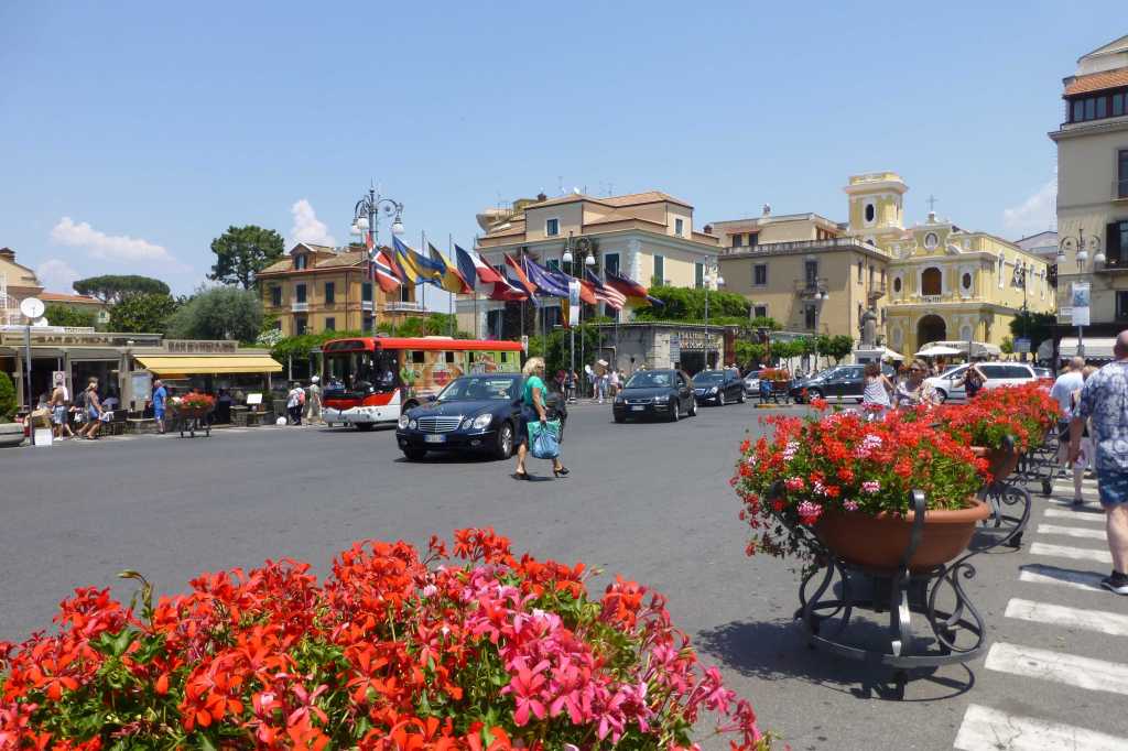 В 11:45 часа вече бяхме на пристанището в Соренто, което още от началото ни впечатли с отвесните си скали и разположените на върха хотели и сгради. Оказа се, че целият център, включително и нашият хотел бяха на този връх и това моментално промени плановете ми да се разходим пеша до хотела. Взехме градски автобус и слязохме веднага щом изкачихме стръмнината на площад Piazza Tasso.