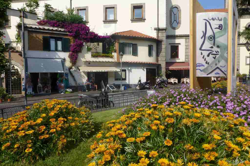 Минахме през една изба, в която група немски туристи имаха дегустация, и домакините решиха да почерпят и нас. Пихме лимончило, което беше много популярна напитка тук, а смесено с мляко бе приятно дори и за мен. Отново излязохме на Piazza Tasso, който бе най-оживения площад в града. На самия му център имаше статуя на ренесансовия поет от 16-ти век Torquato Tasso, чието име носеше площада. От там се мушнахме в една от тесните улички отрупани със сергии със сувенири.