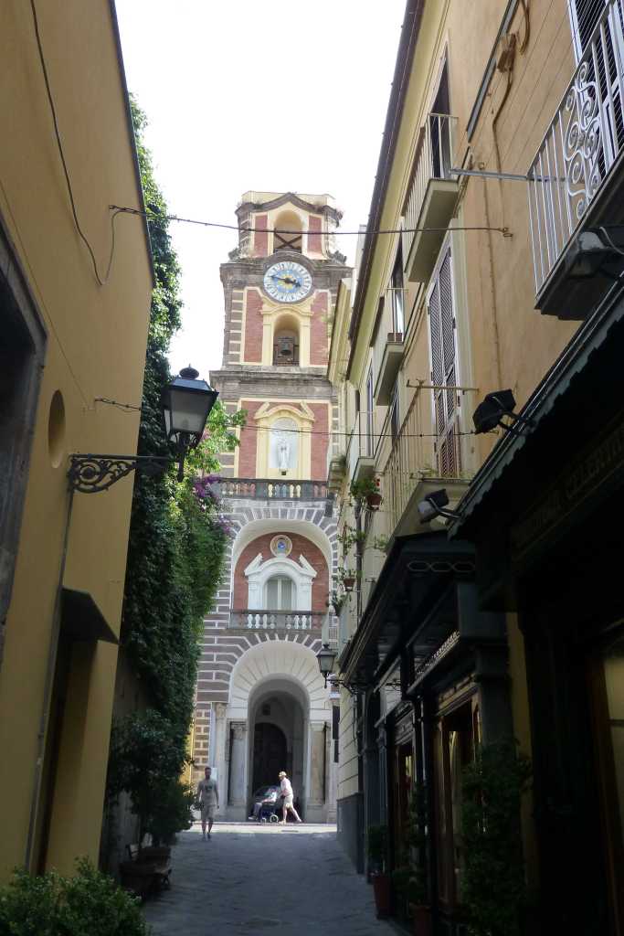 Минахме през Marina Piccola, като от брега се виждаха и големите круизни кораби. След пристанището влакчето ни отново се заискачва по стръмните улични и остри завои връщайки ни обратно на Piazza Tasso. Красивите пейзажи бяха отворили не само фотоапаратите ни, но и апетита ни. Седнахме в едно улично ресторантче с отлична паста и свежи салати. Последва разходка из тесните очарователни улички, които наистина превръщаха Соренто в един от най-красивите градове на неаполския залив.