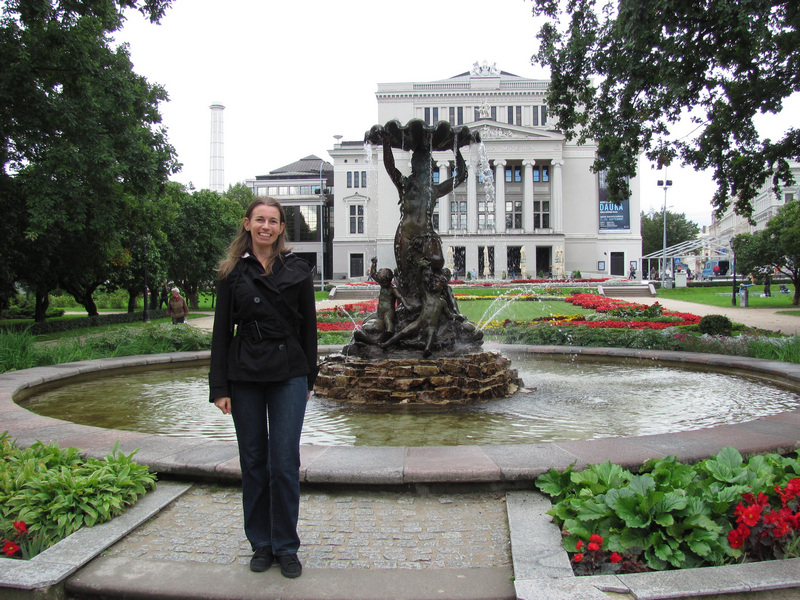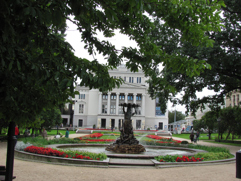 Минах покрай красивата лютеранска църква Сейнт Джон, след което отново излязох на Националната опера и красивите й градини. Вече имах снимки от тук, но не се сдържах и направих нови. Всичко беше много китно и хубаво. Самата сграда може да се сравни с българския национален театър, но е бяла на цвят с хубави колони отпред. Издигната е през 1863 г. от руския архитект (от Санкт Петербург) Ludwig Bohnstedt. Първоначално сградата е предназначена за градски театър на немско говорящите. Днес тук се помещават латвийския национален балет, националния хор и оркестър.