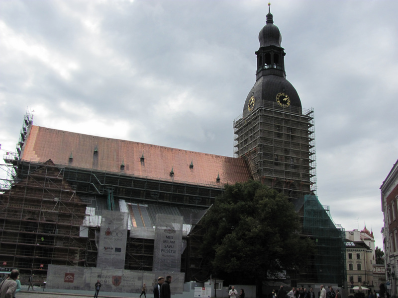 Спускайки се по нови сравнително тесни и извити павирани улички се озовах на Катедралния площад. Самата катедрала обаче бе цялата покрита в скелета и по нея оживено работеха конструктори и реставратори. И така сградата й бе внушителна и датира още от 1211 г, като днес се смята за най-голямата средновековна църква Балтийските страни.