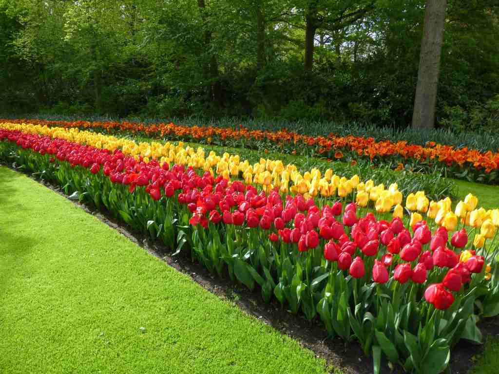 Лалетата в Keukenhof са над 7 милиона, като всяко цветче е свежо, красиво, с прекрасна форма и цвят, а цветовете тук съвсем не са малко. Целият парк е застлан с всички цветове от дъгата, включително и пъстри лалета.