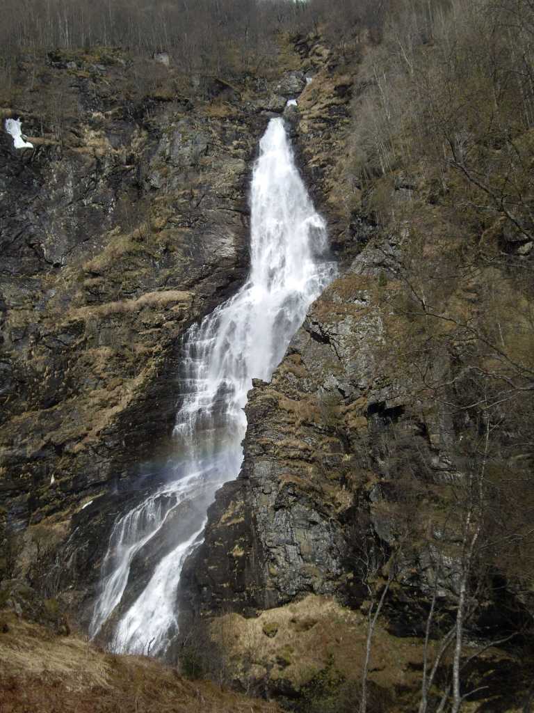 На връщане можех да взема същия живописен влак, с който бях дошла, но на място научих за по-панорамно придвижване и си купих туристически билет за пътуване с кораб, влак и рейс. Влакът тръгна малко след 8 часа и след 2 часа слязох на гара Voss. От там се качих на туристическия рейс до Gotevagen, като пътуването бе 1 час, но на по-хубавите и живописни места, рейсът правеше 5 минутна фотопауза. Видях невероятни водопади и кристално чисти езера, в който се оглеждаха планини със заснежени била.