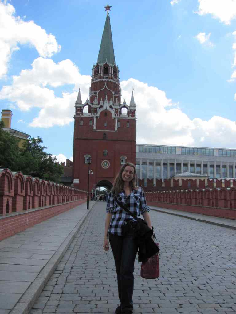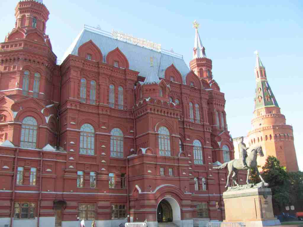 Точно в 08:30 часа часовника на Кремъла започна да звъни, камбаните биеха звучно и ние застанахме под него заслушани в песента, заснемайки всяко движение на секундарника. Небето беше ясно синьо, слънцето блестеше с пълна сила и въпреки това ни бе трудно да уловим наситените цветове, особено на църквата Василий Блаженни, която стоеше от слънчевата страна, както и на универсалния магазин ГУМ, който също впечатляваше със своята архитектура. Съкращението ГУМ всъщност идва от Главный Универсальный Магазин и това е най-старият търговски център в града.