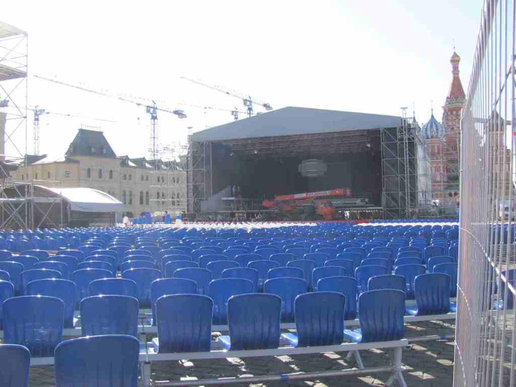 За съжаление нямахме време за представления, а продължихме към следващата основна атракция прочутия Червен площад / Красная площад, който е най-старият площад в града и на който се намират катедралата Василий Блажени, Кремъл, Мавзолеят на Ленин и други забележителности на Москва. Само след няколко минути бяхме там ахкайки пред красотата на сградите. Часът бе малко преди 08:30 и все още нямаше много туристи, можехме да снимаме огромния площад, част от който обаче бе заграден поради предстоящ концерт.