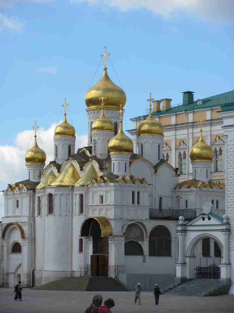 Постепенно Кремъла се запълни с групи-туристи и ние се радвахме, че успяхме преди това да разгледаме прекрасните църкви издигнати още през 15-ти век. За съжаление нямахме време и не бяхме платили вход за разглеждане на Оръжейната палата, която брошурите представяха като най-старият и най-богатият дворцов музей. Основан е през 1806 г. като императорски дворцов музей, като първоначално в състава му са били включени три императорски съкровищници: дворцовата съкровищница, където се съхранявали императорските подаръци; конюшенная казна, в която са били изложени парадните украшения за конете и каляските, използвани от руските цари при тържествени церемонии и оръжейната сбирка – колекция от оръжия и други ценни експонати. Днес колекцията се състои от близо 4000 експоната датиращи от периода между 12 веки и 1917 г., като има и уникална колекция от диаманти, бижута и скъпоценни камъни.