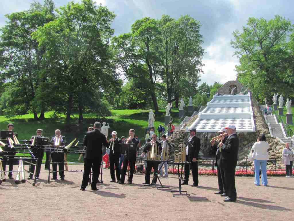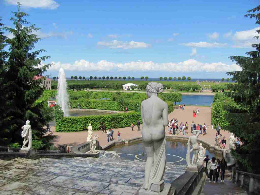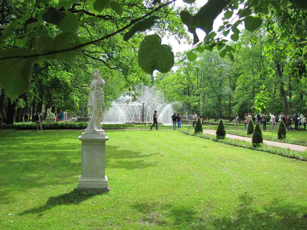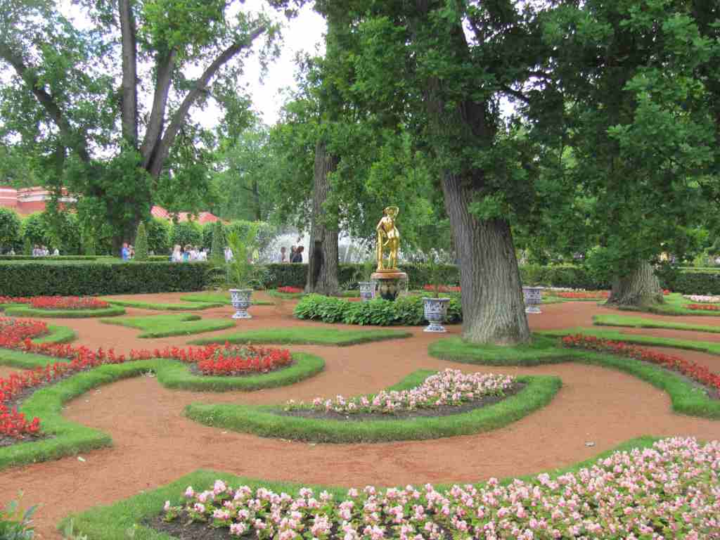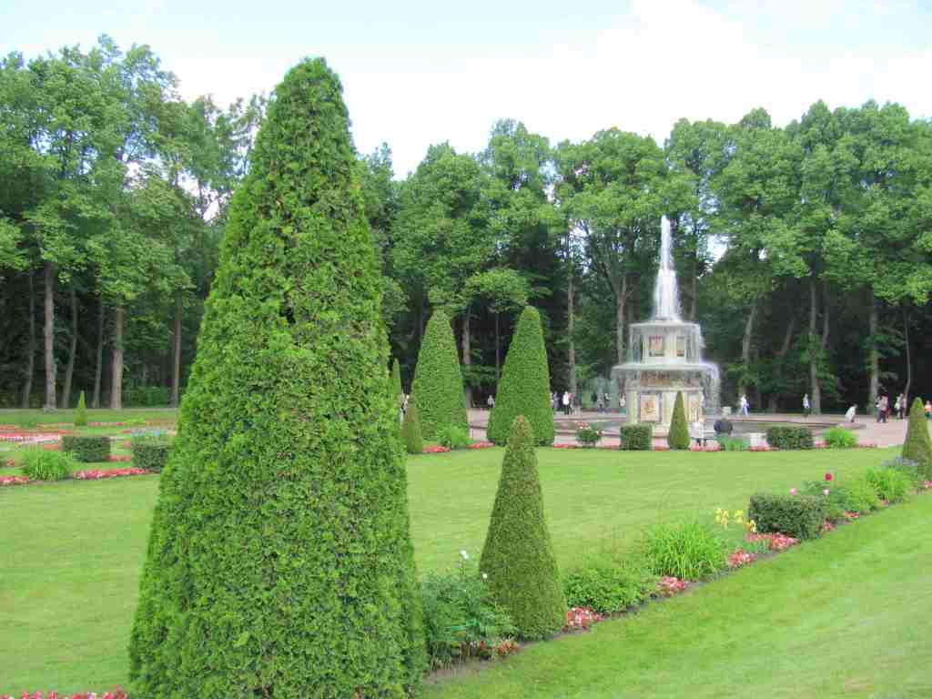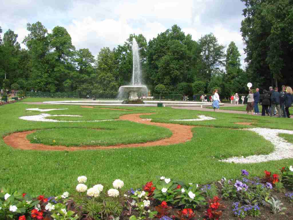 От там продължихме разходката си из огромните и красиви паркове, озеленени в различни стилове и бе трудно да се повярва, че на такава Северна ширина могат да виреят толкова много пъстри и различни цветя. Всеки един от императорите след Петър Велики е допълвал и разраствал дворците и парковете тук, затова днес същите се разпростират на голяма площ, която ни бе трудно да разгледаме за 4 часа.